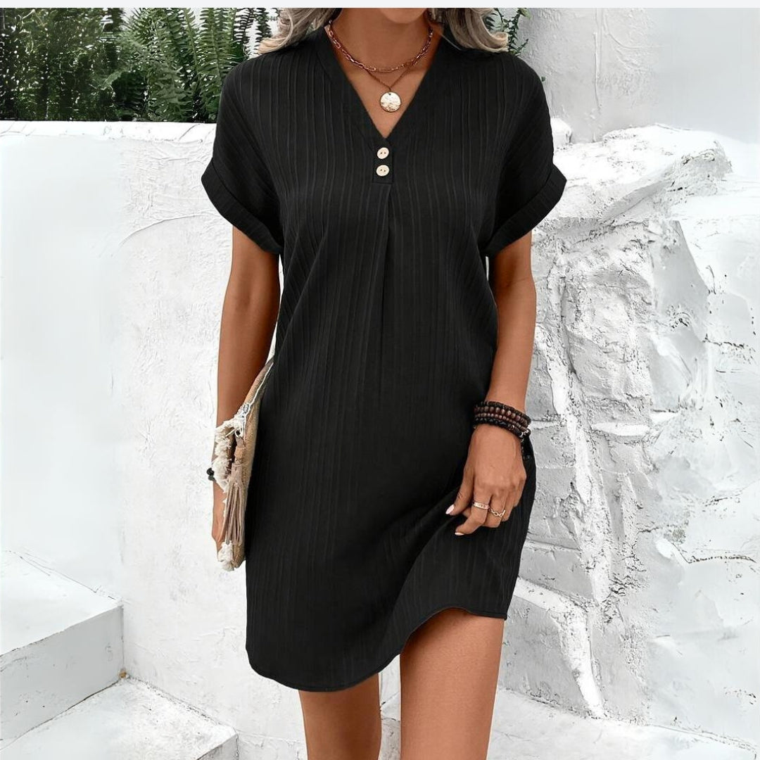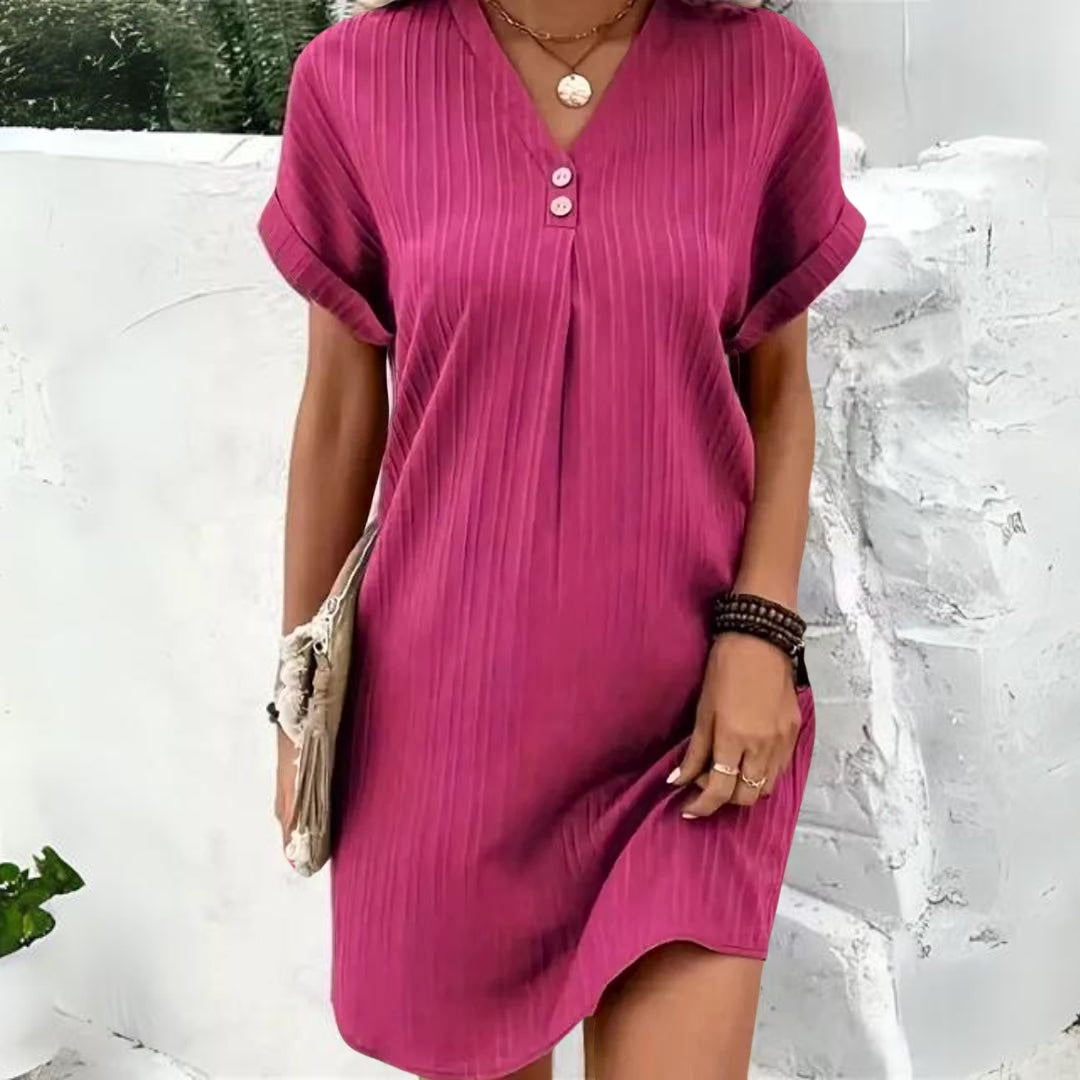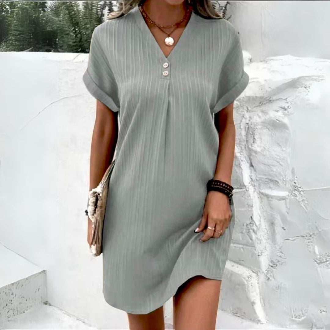 De Nina V-Hals Katoenen Jurk biedt hoogwaardige stof en buitengewone comfort. Perfect voor elke gelegenheid.